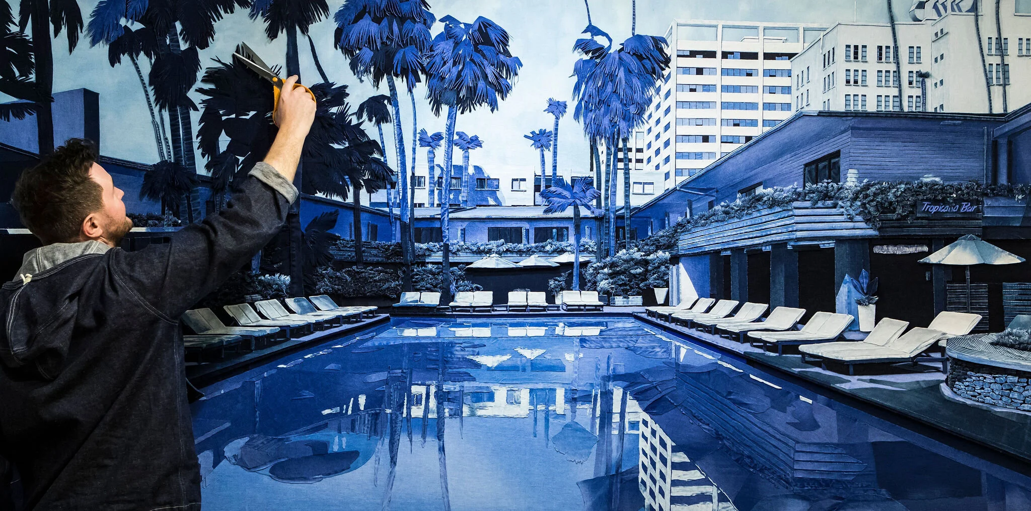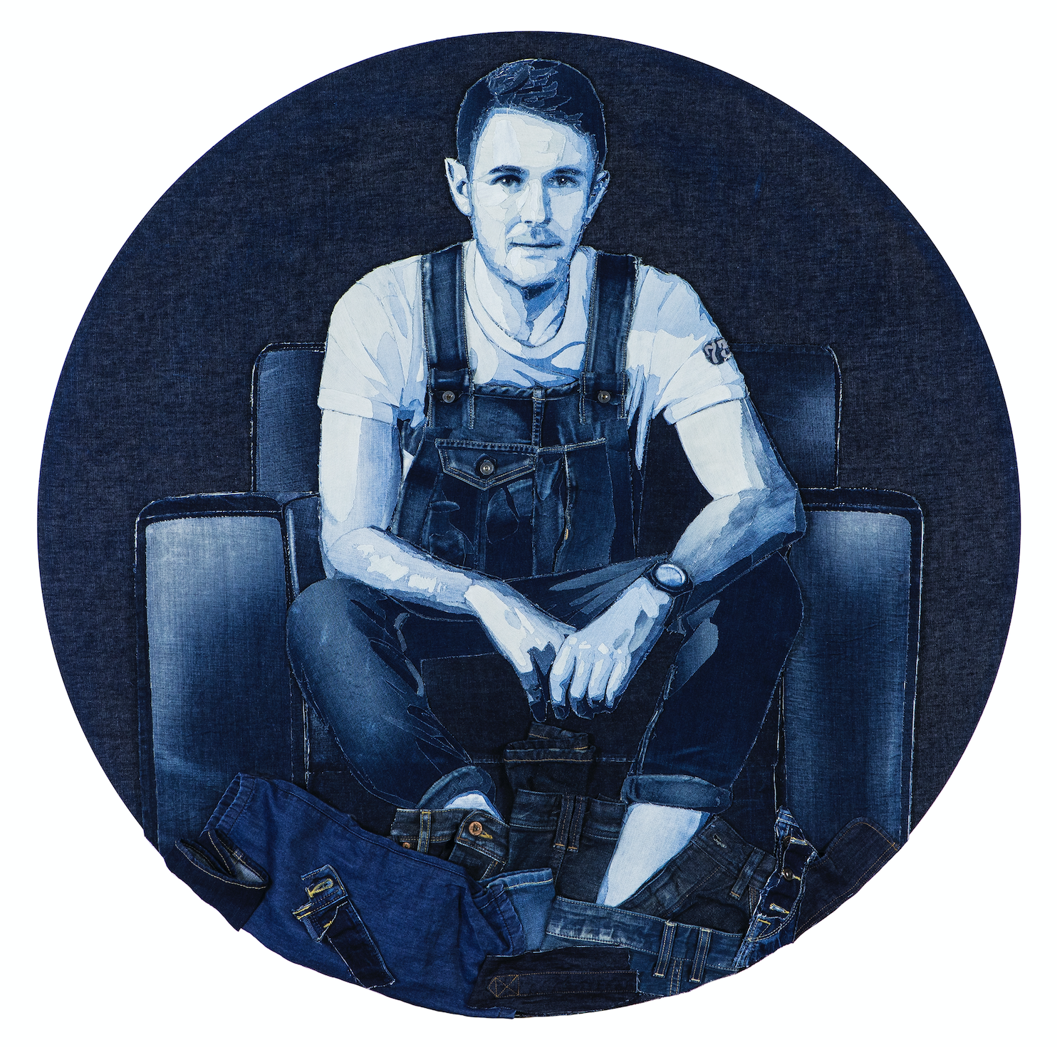 At first glance, many believe that Ian Berry’s work are blue toned photographs or indigo coloured oil paintings. This is not only when viewed online or in print, when much of the depth and detail is lost, but even up close. Even at touching distance, many viewers don’t realise that they are looking at many layers, and shades, of denim jeans.