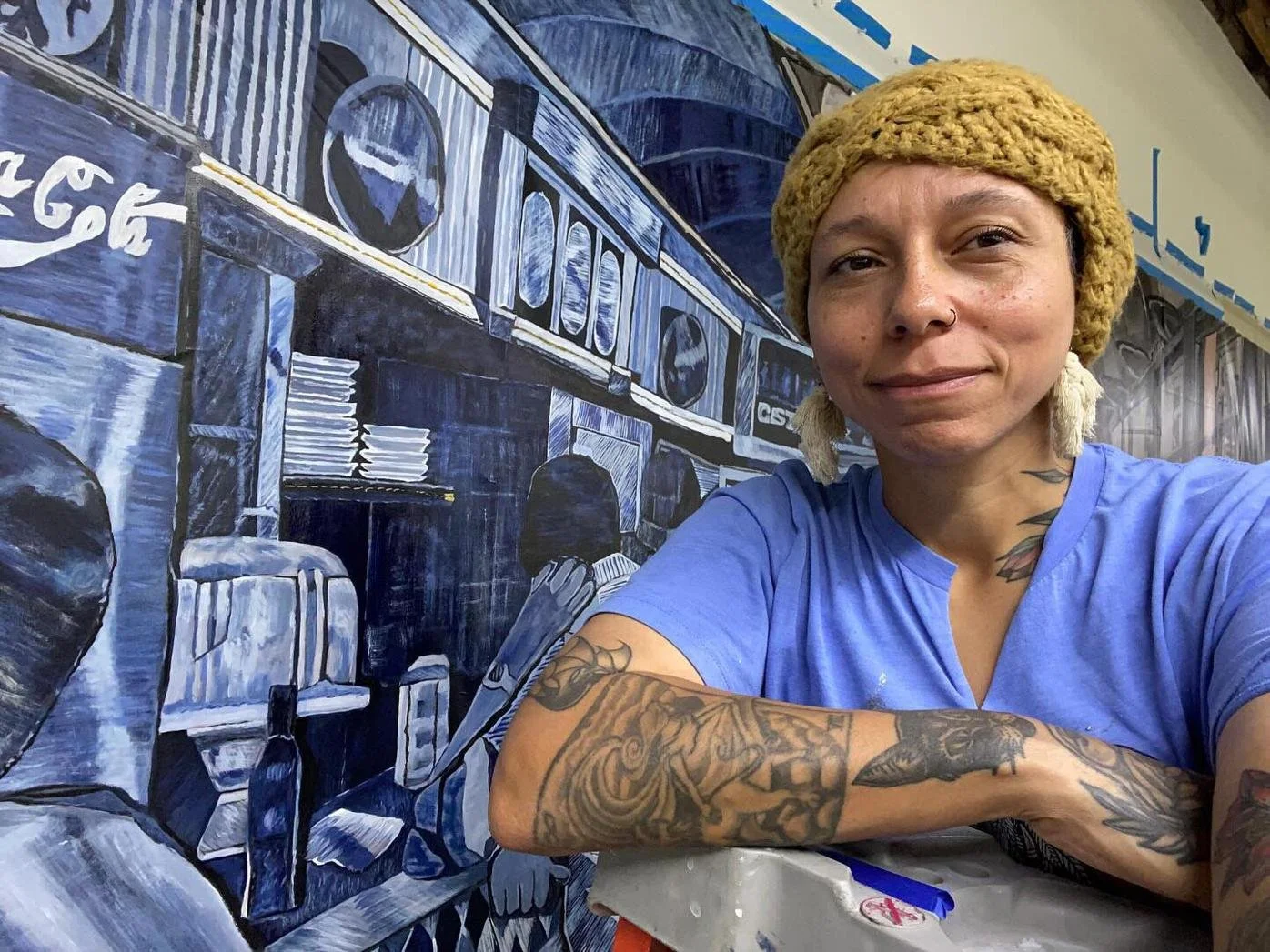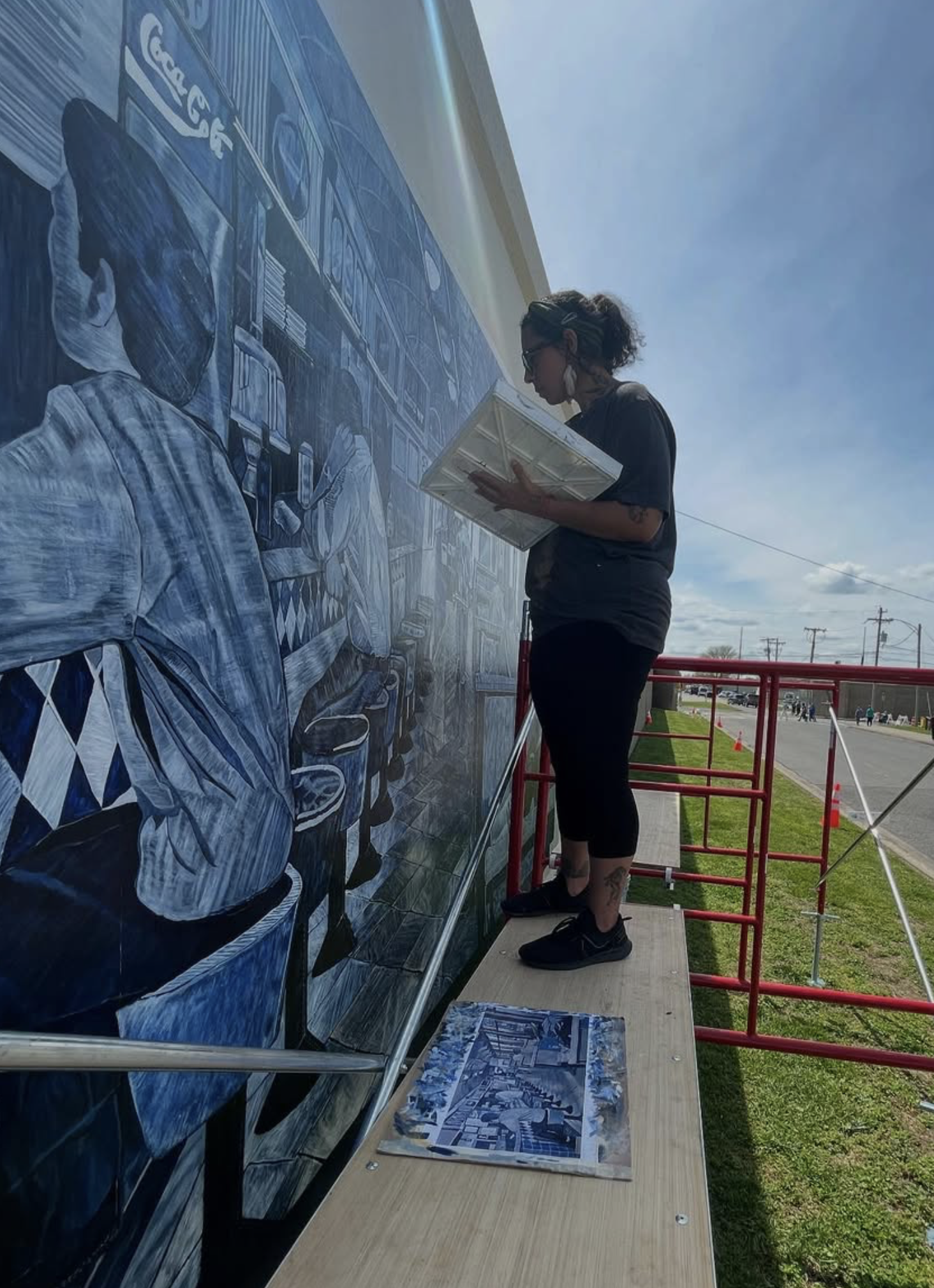Tanya Neitzke working on the mural in Paducah, Kentucky