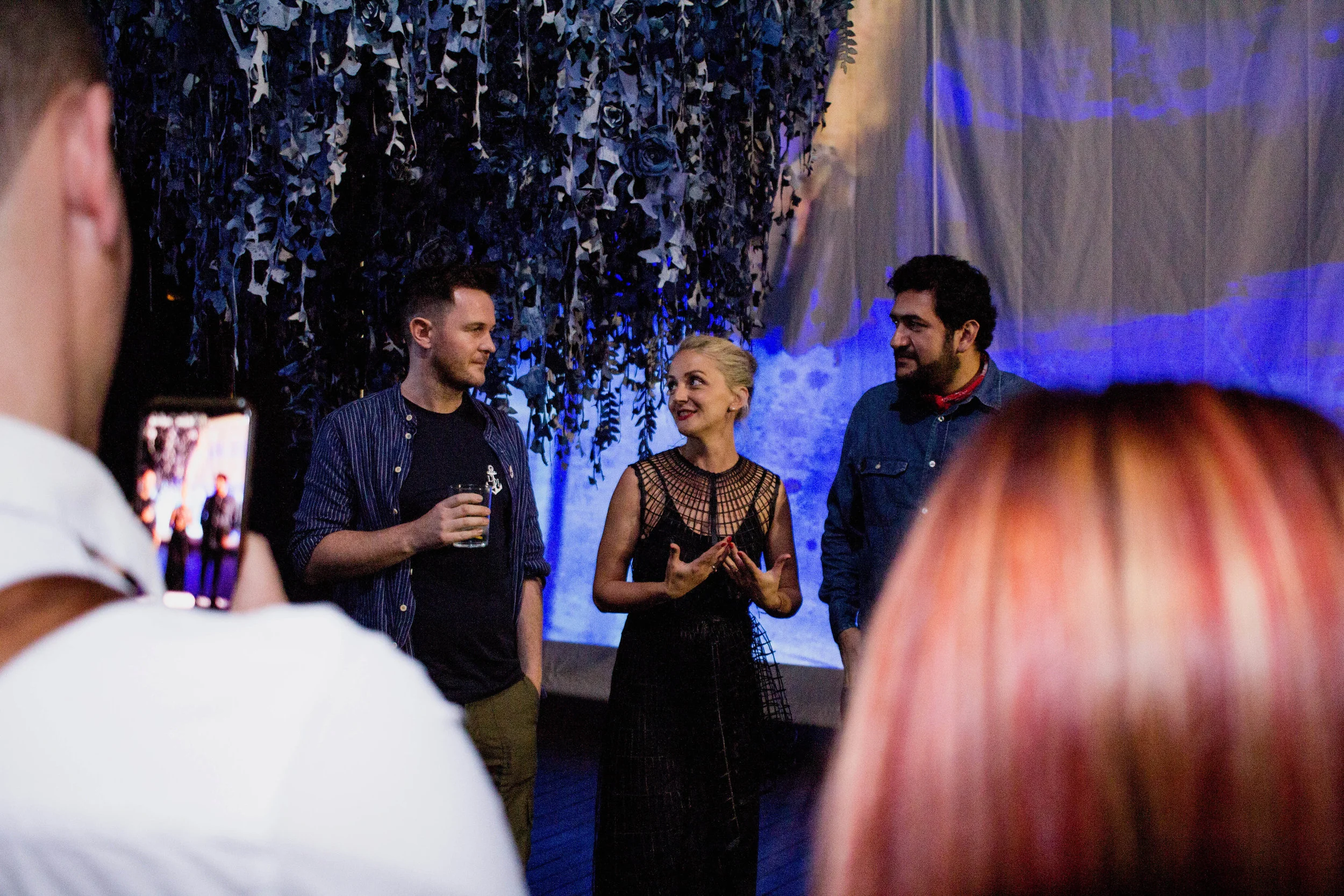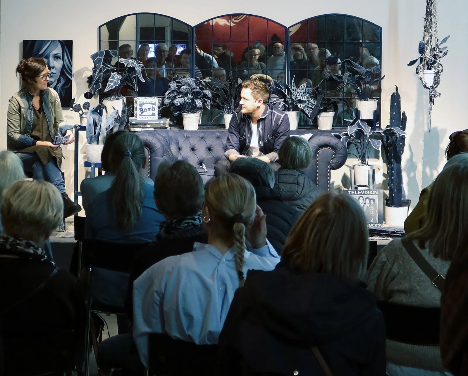 Curator Malena Karlsson interviewing Ian Berry at the opening of Material world at Textil Museet