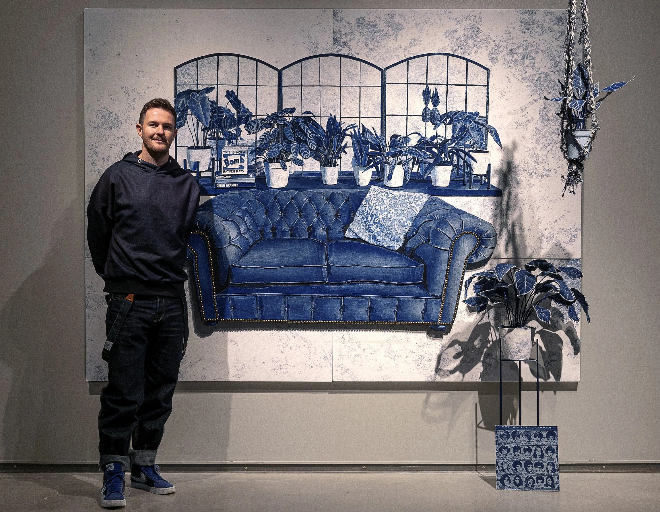 He set about recreating his home in all denim, from his Chesterfield sofa, the mirrors, plants and albums he would listen to.