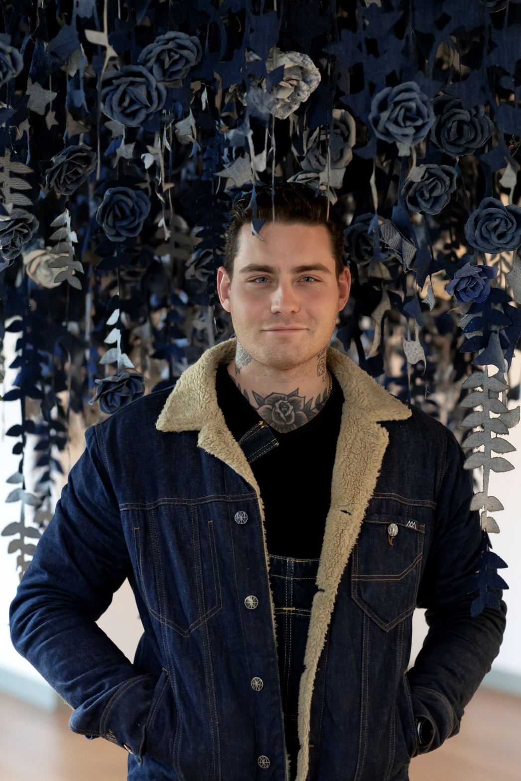 Juxtaposed next to the Hotel California body of work it brings a bright element into the museum with the natural light coming from the original windows of the beautiful home of famed poet Hendrik Tollens. Originally depicted to portray a community garden in New York and to educate children about nature - Ian showing a cotton plant and explaining that he transformed the material that is made from plants, cotton, back into plants, flowers and wisteria all made from recycled denim jeans. The installation evolved and built on the sustainability idea, portraying nature made of all denim. The process of making becoming as much of the message, using Tonello in Italy to wash, with little water, and laser - many of the new techniques the industry are using to try and be more sustainable. Using Cone Denim who are part of the Trust Cotton Protocol and offer forensic verification of cotton traceability through their partnership with Oritain.